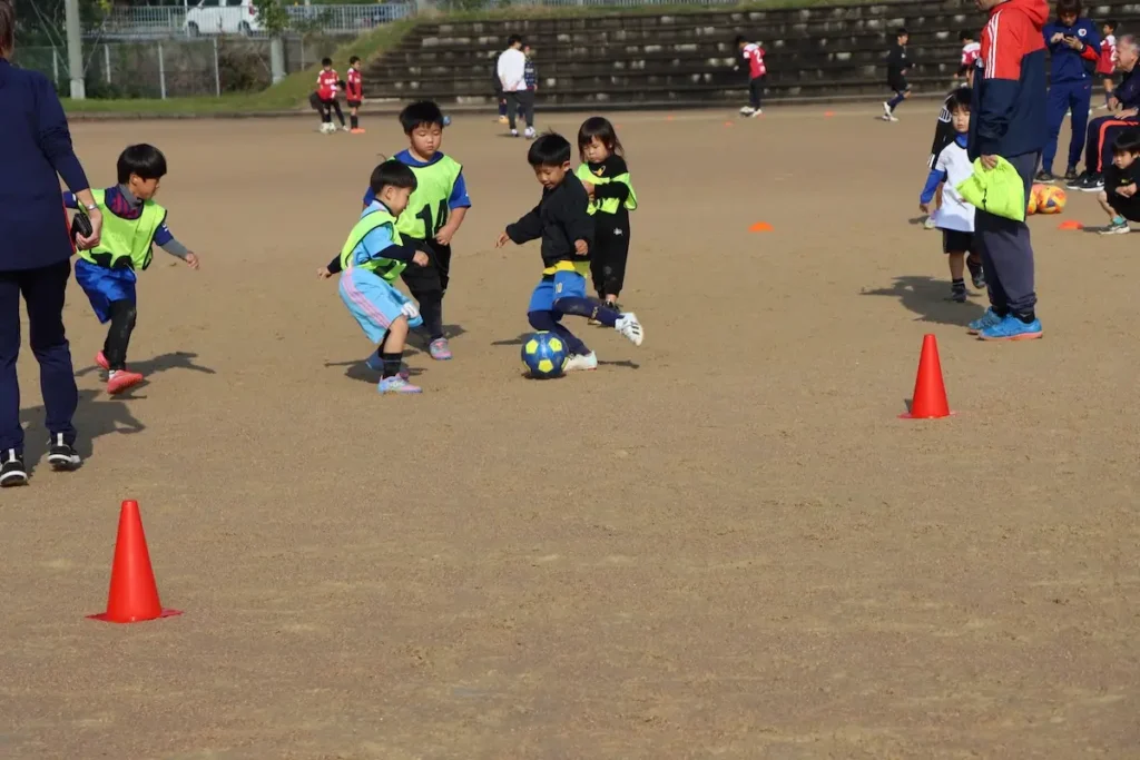 山陽小野田市少年サッカー連盟所属の小学生75名が参加し、